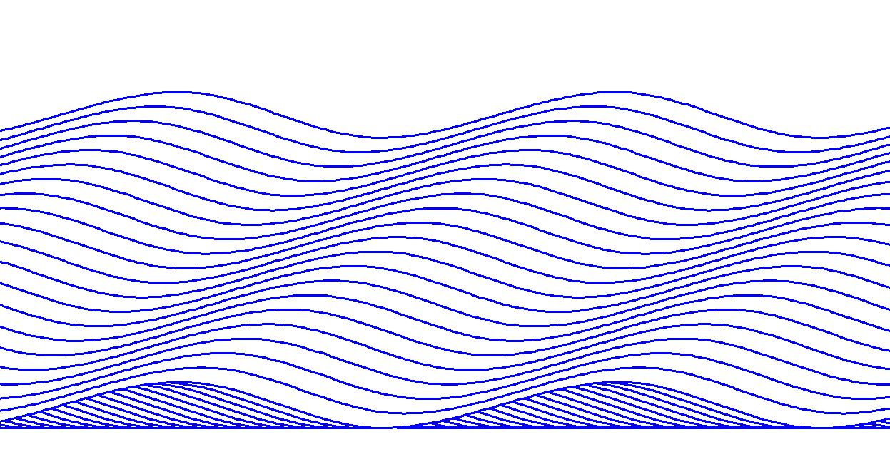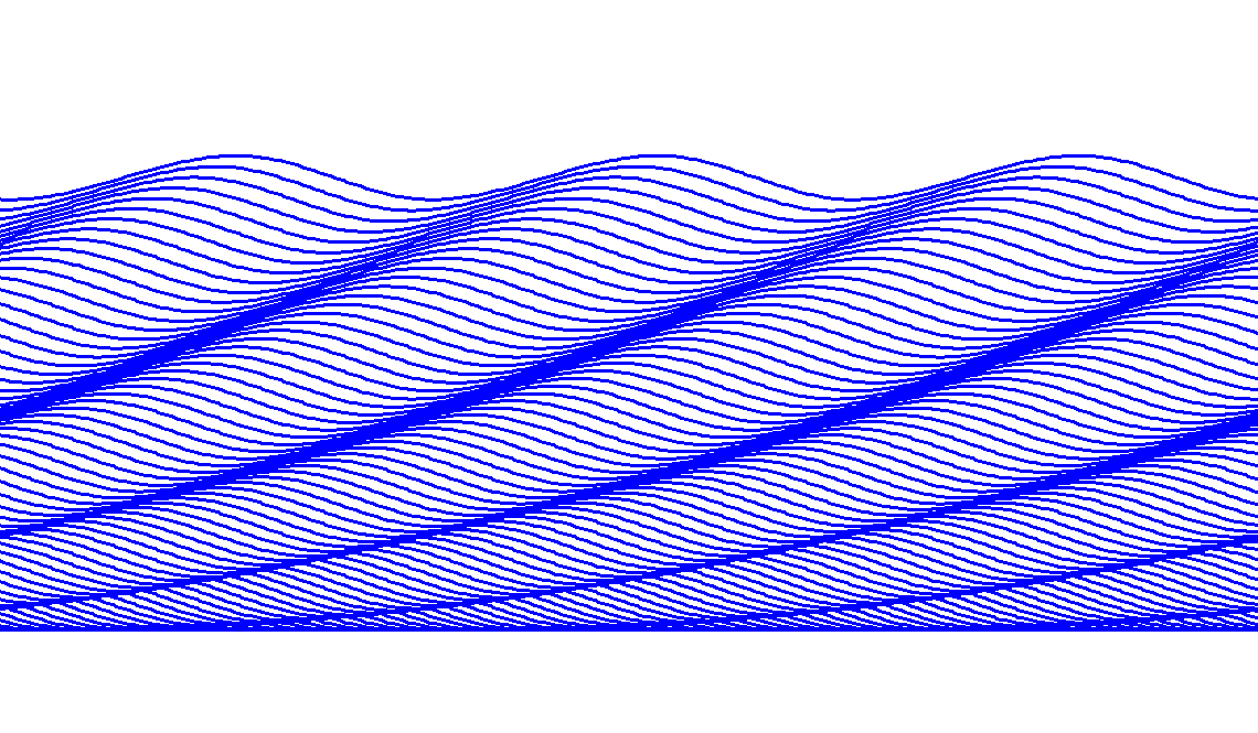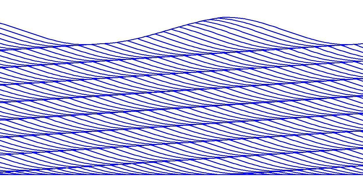 Obviously, if the angle of climb is smaller than the dip of the stoss side, there will be no stoss side preservation and the resulting cross lamination will look like in the sketch below (which, by the way, was quite an effort to generate in Matlab; you can easily do this and much-much more with David Rubin’s Matlab code, but I wanted to understand things a little better by coding something simple myself):