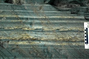 The delta at the updip end of the well-known (and somewhat overrated) Lake Louise is one of these lacustrine deltas. However, the one that really caught my attention is feeding into Peyto Lake. We got to the Peyto Lake overview area relatively early in the morning, when there was no wind, and the lake’s turquoise surface was perfectly smooth. Stunning view from high above, but most of my excitement evaporated (<– euphemism) when a busload of noisy (<– euphemism) tourists arrived and the viewing area suddenly felt like a Houston shopping mall on a weekend (<– exaggeration). So we started our descent toward the lake, on the trail that ultimately, if you are brave enough and rough enough (we were neither of these, but that is a different story), leads to Caldron Lake, above Peyto Glacier.