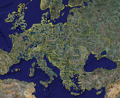 The image below is a screenshot from Google Earth, showing the data published by Turney and Brown. The Neolithic locations are color-coded according to their age, red being the oldest, and dark blue being the youngest. The KMZ file (made with GPS Visualizer and some help from Matlab) is available here.