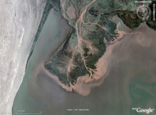 Hindered Settling hasn’t hosted a Where-on-Google-Earth in a long time, but WoGE #295 (hosted at Andiwhere’s) had such a range of colors and geological features that I couldn’t refrain from looking for it and, once found it, had to post the solution. So, after a short break in the game (busy week!) here is WoGE #296 — the rules of the game are nicely described over here. I invoke the Schott rule. Posting time is July 8, 2011, 14:00 UTC.