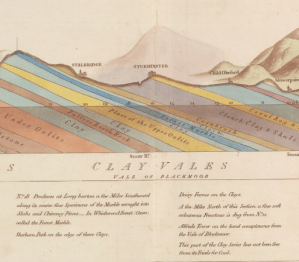 Detail from “Geological view and section through Dorsetshire and Somersetshire to Taunton, on the road through Yeovil toWimborn[e] Minster, &c.”, by William Smith, 1819. Source: Oxford Digital Library
